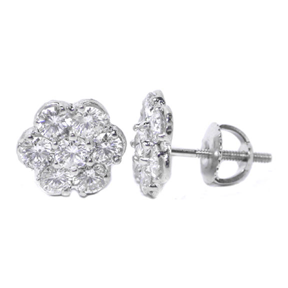 #8542 Ladies Round Diamond Cluster Earrings 14K White