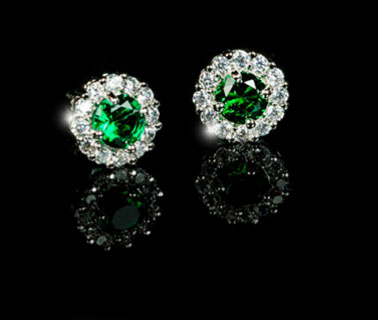 #8552 Ladies round emeralds ad diamonds in a 14K white gold cluster earing mounting