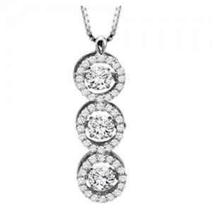 #8518 Ladies Round 3 Diamonds =.33ct split journey pendant 14K White Gold