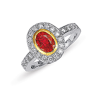 #7513 14kt white gold, oval ruby.60ct, round diamonds.50ct bezelset ring, $1900