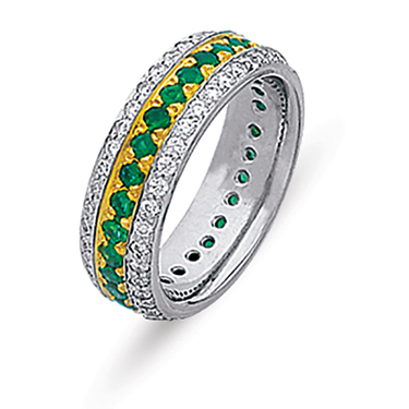 #7514A 18kt white gold round emeralds/diamonds pave set eternity band