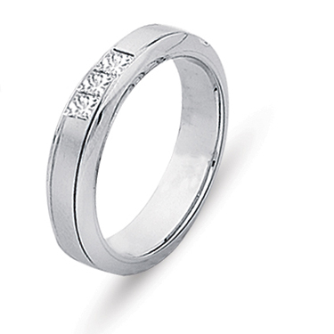 #7527 platinum squared wedding band, 6mm, 3 princess cuts .60ct