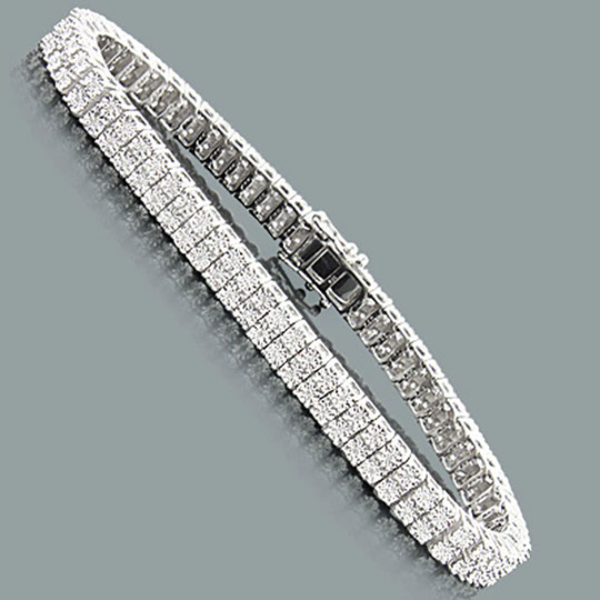 #9502 Ladies Double Row Princess Cut Diamond Tennis Bracelet 14k White Gold