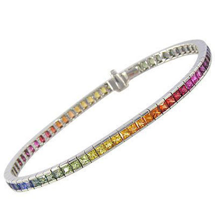 #9505 Ladies Multicolor gemstone tennis bracelet 14K White Gold