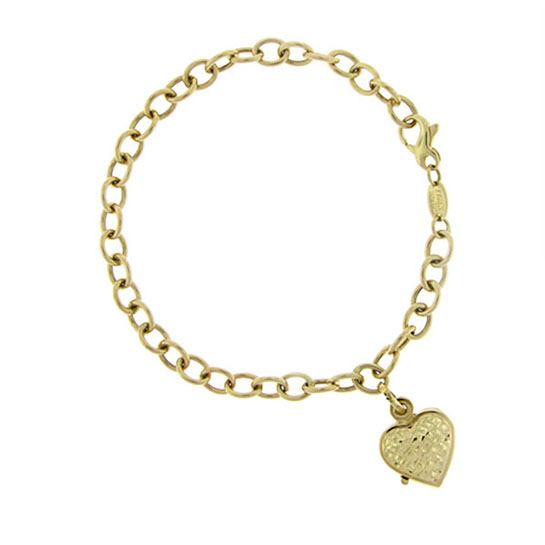 #9509 Ladies 14K Gold link bracelet w/ heart shaped locket