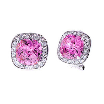 #8538 Ladies Cushion Cut Pink Diamond earring halo mtg. 14K white gold