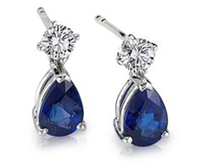#8539 Ladies Pear Shaped Sapphire and round diamond stud earrings 14K white gold