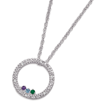 #8505 Ladies Round Diamond Circle Journey Pendant with 3 Gem stones 14K White Gold