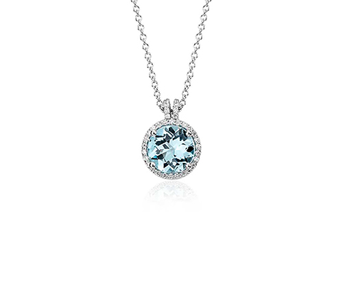 #8508 Ladies round diamond & Aquamarine pave set pendant 14K White Gold