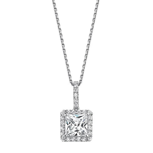 #8511 Ladies Diamond Princess Cut Halo Pendant