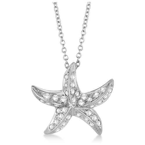 #8520 Ladies round diamond Starfish pave set pendant 14K White Gold