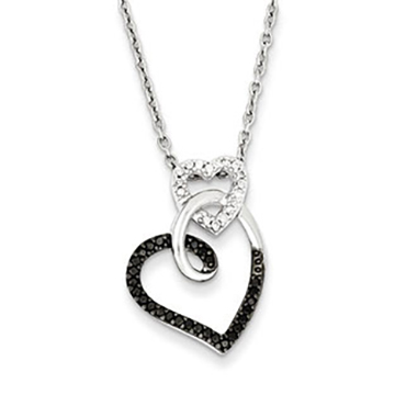 #8527 Ladies Round Black/White Diamonds Double Heart Pendant 14K White Gold