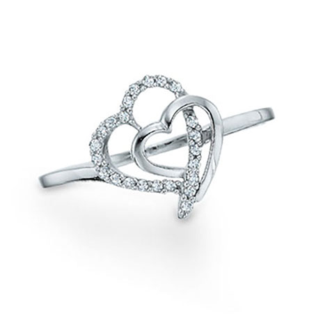 #7009B- Ladies 14kt white gold, double heart dia. ring, .36ct, $650