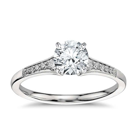 #7014- Ladies platinum, round dia. solitaire w/milgrain,
