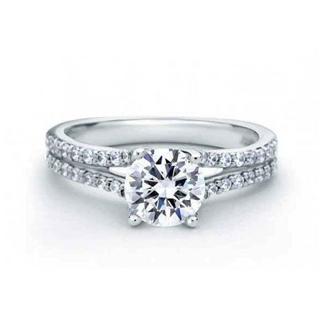 #8031- Ladies 14kt white gold dia. ring, split mounting, shared prong setting