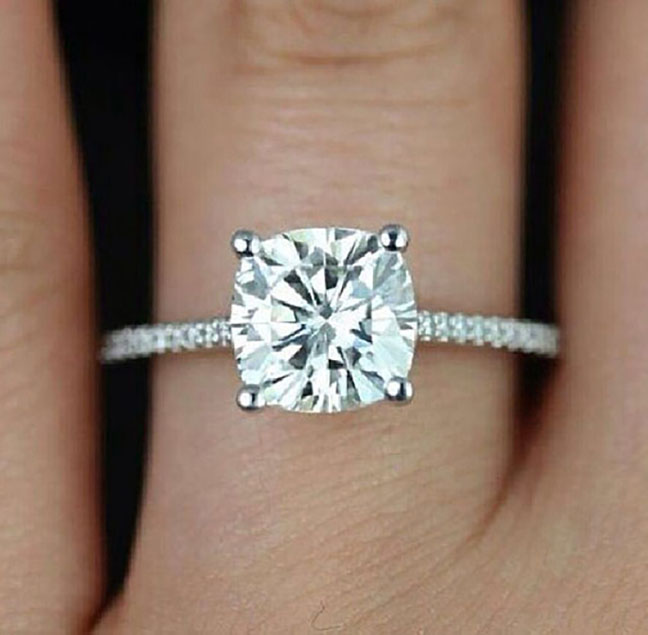 #9028 Ladies 14kt White Gold Cushion Cut Diamond in a Cushion Shaped Shared Pronged Halo Setting