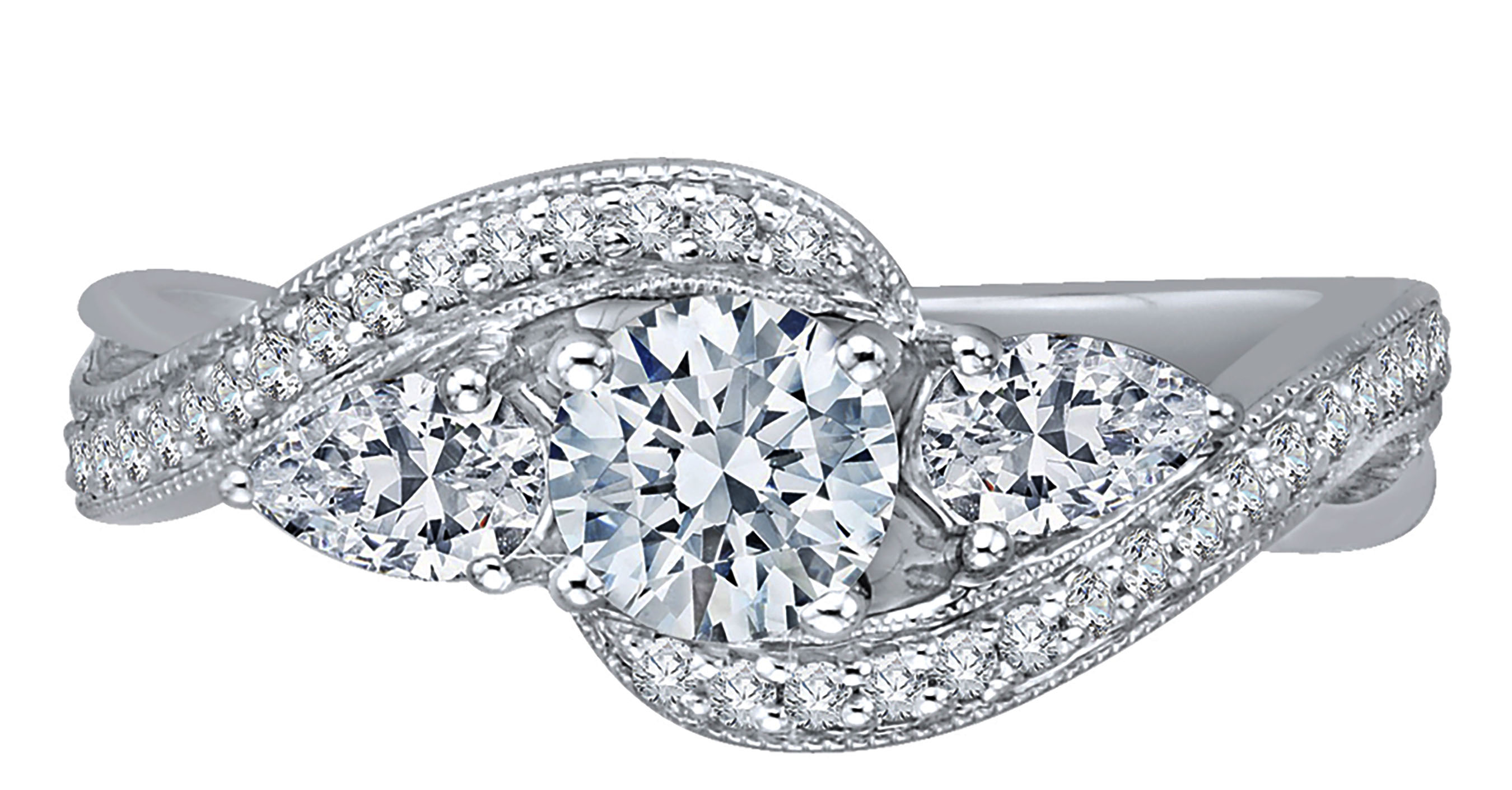 #9018- Ladies 14kt white gold, round dia. center & pear shaped dias.