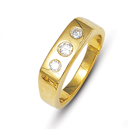 #7517 Gents 14kt yellow gold, square classic 3 round diamond band