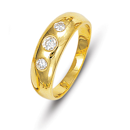 #7518 Gents 14kt yellow gold, rounded classic 3 round diamond band