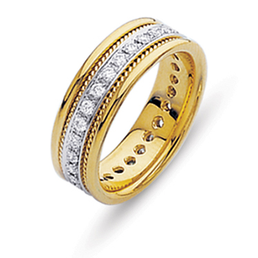#7521 18kt two tone, princess cut diamonds pave set eternity band