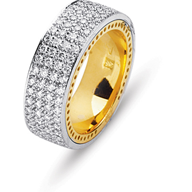 #7516 adies 18kt white gold, 3 row pave set round diamond eternity band