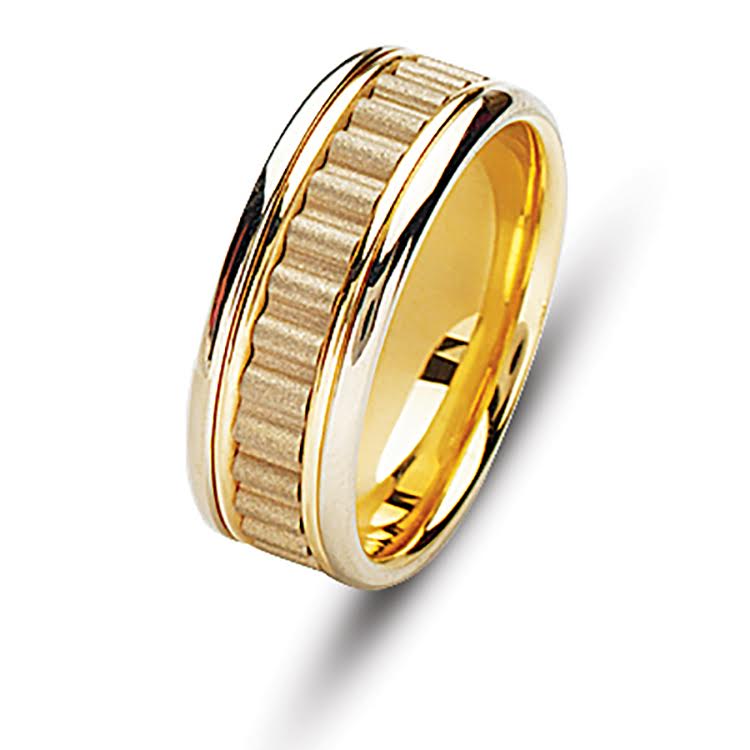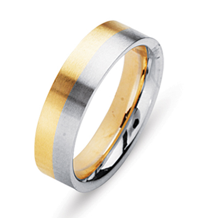 #7525 14kt two tone, 5mm,domed with polished border wedding band