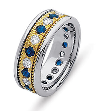 #7507- 18kt Yellow Gold/Platinum, 7mm handmade, round diamonds & sapphire Eternity Band